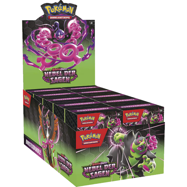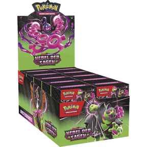 Maximiere deine Sammlung mit dem Pokémon Karmesin & Purpur Nebel der Sagen Boosterbundel Display, erhältlich in deutscher Sprache.